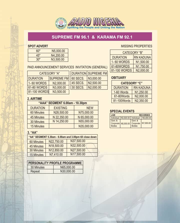News FRCN Upgrades Kaduna Station With New Transmitters The Federal Radio Corporation of Nigeria (FRCN) has awarded a contract for… February 27, 2026